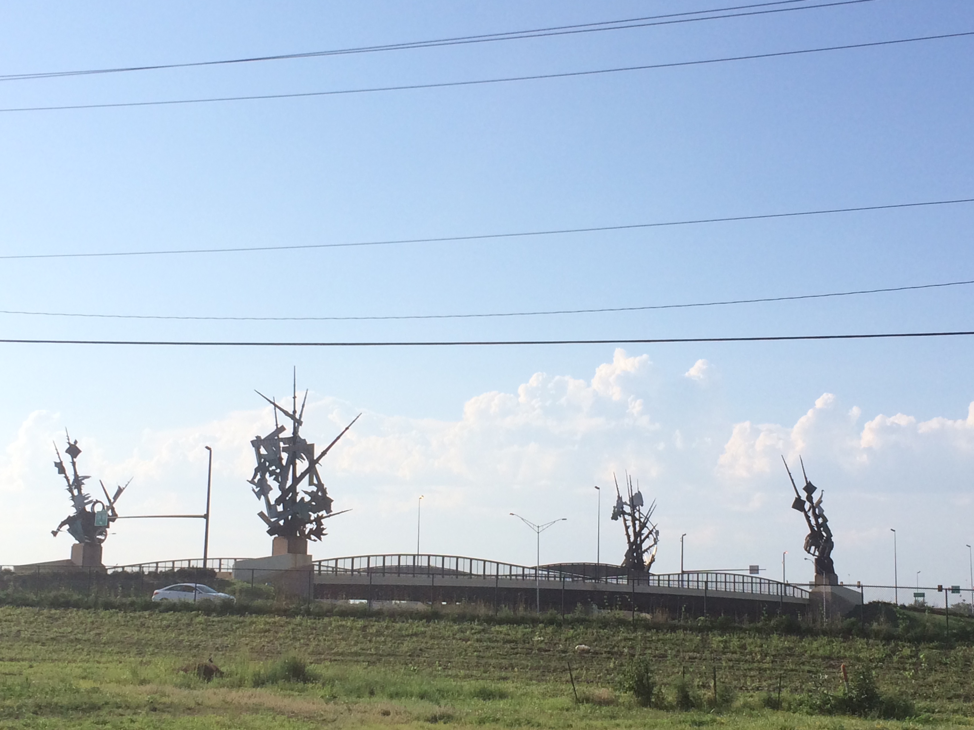 Today started much quieter. I awoke somewhat early and headed out on a photo walk to check out some of the really interesting sculptures that dot the area of Council Bluffs. There was a bridge just down from our hotel that had four completely unique sculptures on the four corners. It was really cool to try and shoot some pics of it in the early morning light. I then headed over to another area to capture a weird multi-person statue, looking for unique angles to photograph.