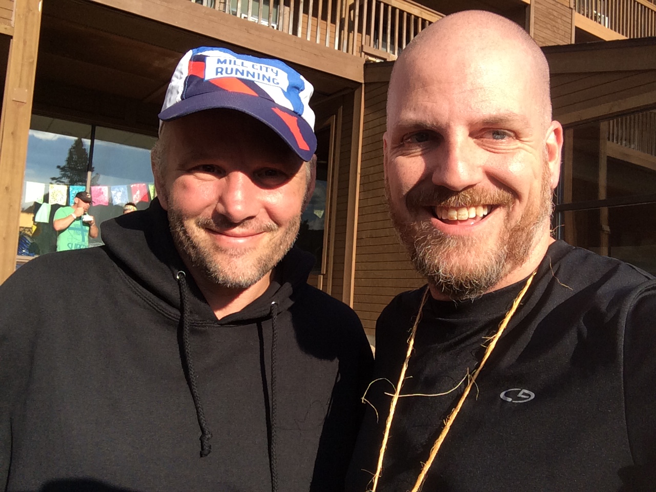 The next few hours were spent talking and meeting up with familiar faces, some people such as Jeff who I had never interacted with outside of social media. Julio, the main guy behind Break the Stigma stopped by and sat with us for a few minutes to chat, and I got to give some congratulations to my co-worker Jason on his 100 mile finish. I ran into Mark again and thanked him for helping me along the trail. Every single one of us marveled at the winner Jake who crushed the course record by over an hour and a half. On and on, I ran into people who I had met at other races, or knew from social media groups. It was like one big family gathering, albeit one where most of us stunk really bad.