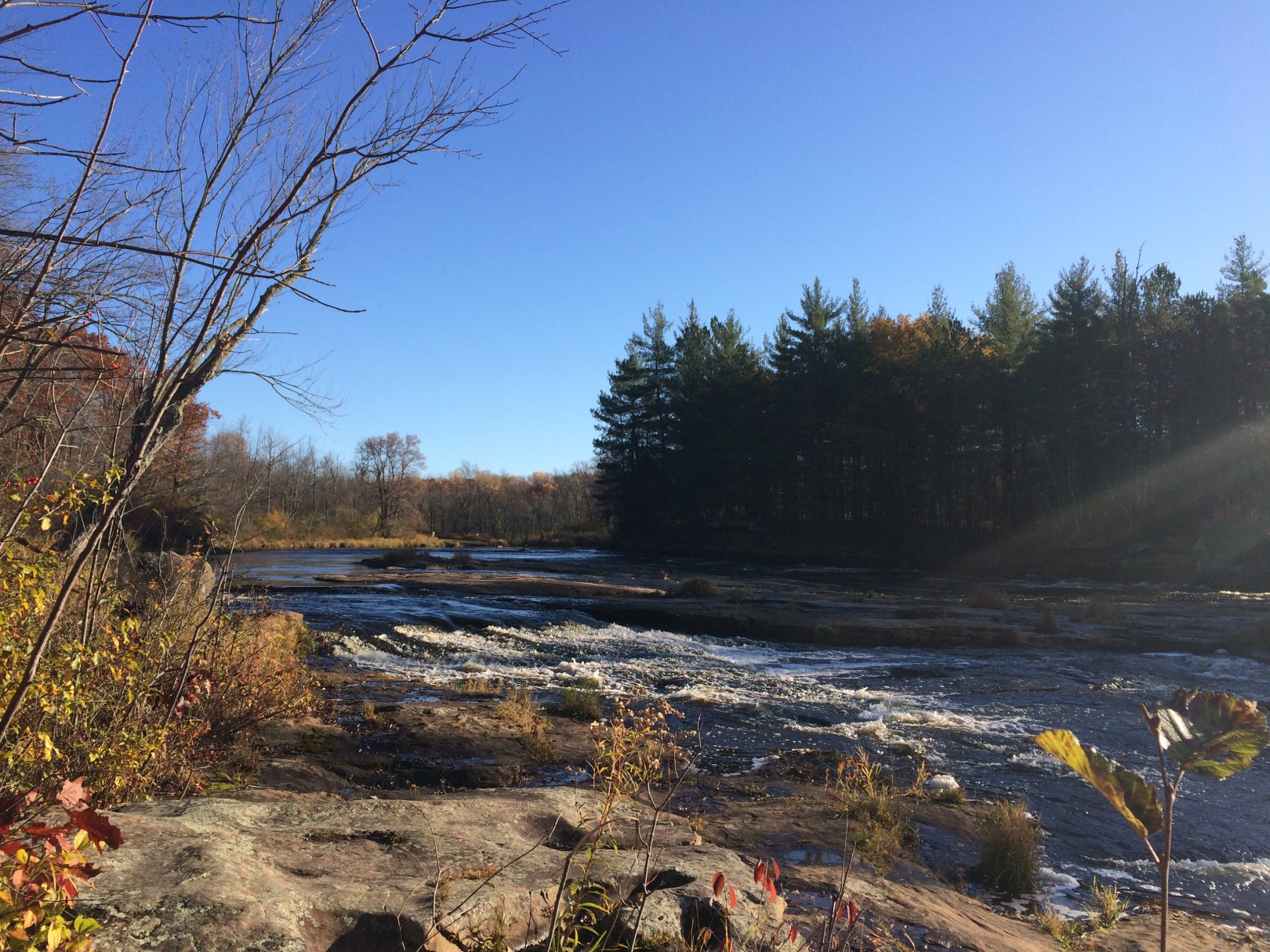 This morning my wife and I headed up to Banning State Park, a short drive form the cabin we’re staying at. We needed to get some running in, and decided to check out the trails in the park for our Saturday long run. There are multiple loops around the park, most of them grassy double-track. However, when you get down towards the Kettle River, the terrain is much rockier and less run-able. It’s also beautiful, so our planned run ended up having a large hiking component to it as we wandered around by the river and took our time. We pulled out our phone cameras and took some shots here and there until we got back into the portion of the track that wasn’t near the river and started running again.