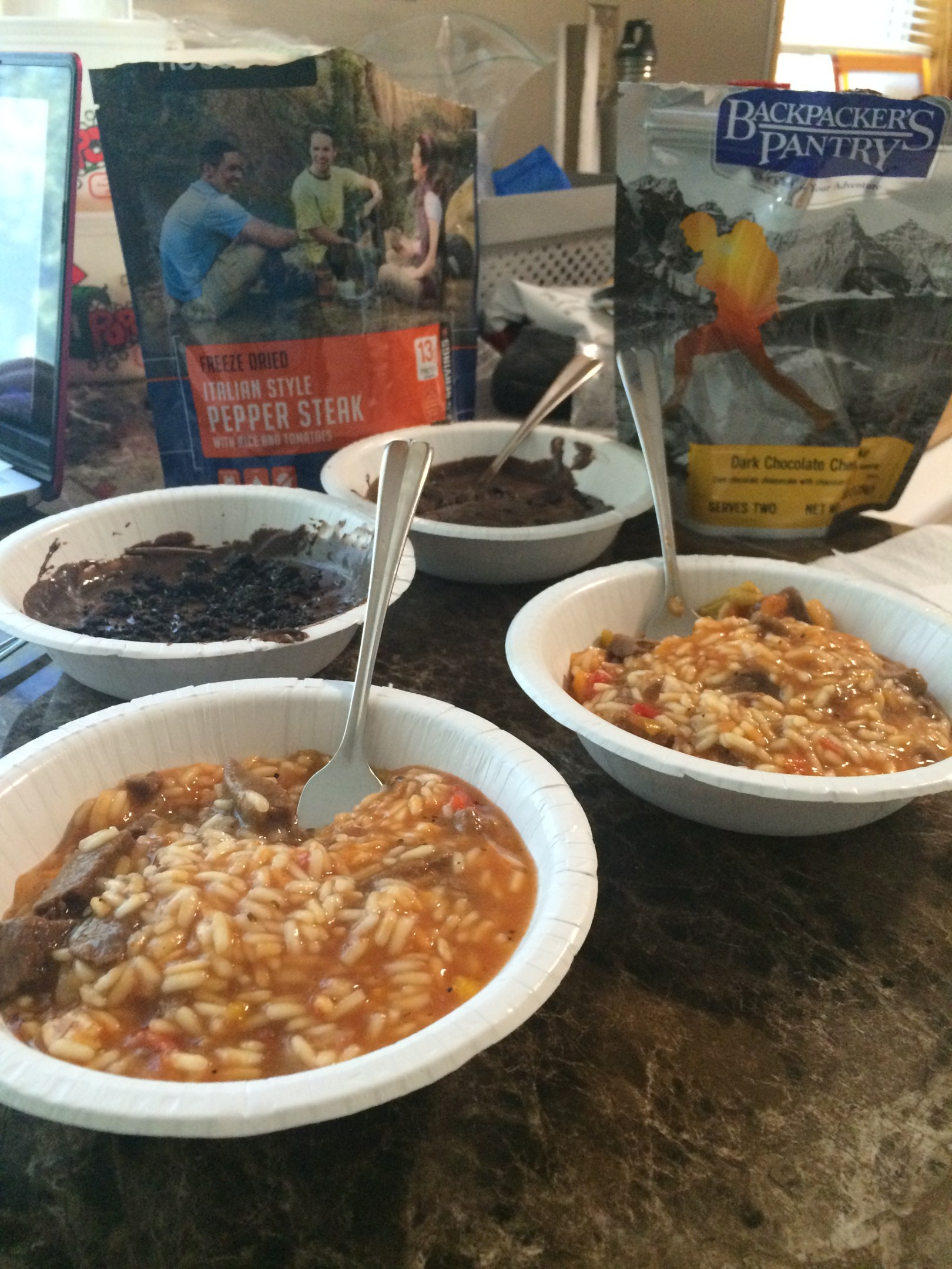 First up is Mountain House Italian Pepper Steak. We boiled the appropriate amount of water, poured it in, stirred and waited 8 minutes. Since we were in the comfort of our home we decided to pour it out into bowls so we could see what we were getting. I’m happy to report that this particular one was a big success. It needed a little salt and pepper, but the meat wasn’t overly chewy, and the peppers tasted really good. Overall, very happy with this one and this might go with us on the trip.