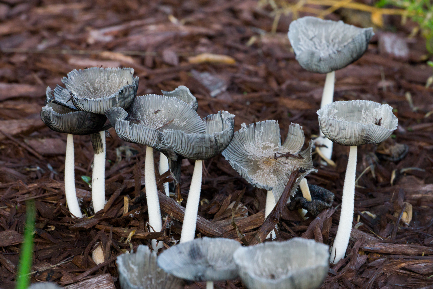 There’s a small section in our mulch that has decided to sprout mushrooms. Every morning they come out in full bloom, and then wither in the heat of the day. The next morning, they bloom once again, and the cycle repeats itself on and on. The other day I grabbed the camera to capture them in full bloom for today’s blog creation.