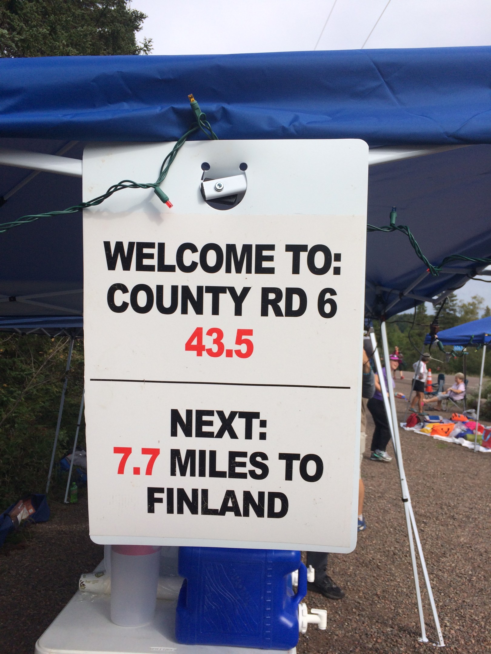We arrived at the County Road 6 aid station around 2pm (along with the charming Rob the medic) and started getting the tents and canopies set up. My wife started arranging the order of the tables and laying out the supplies, while we got the drop bag area set up and made sure there were cones on the road in the right spots. One of the biggest challenges with County Road 6 is that the trail crosses the highway about a quarter mile apart from where it re-enters the trail. This means that runners are running along side the road for a stretch, and traffic safety becomes a big deal.