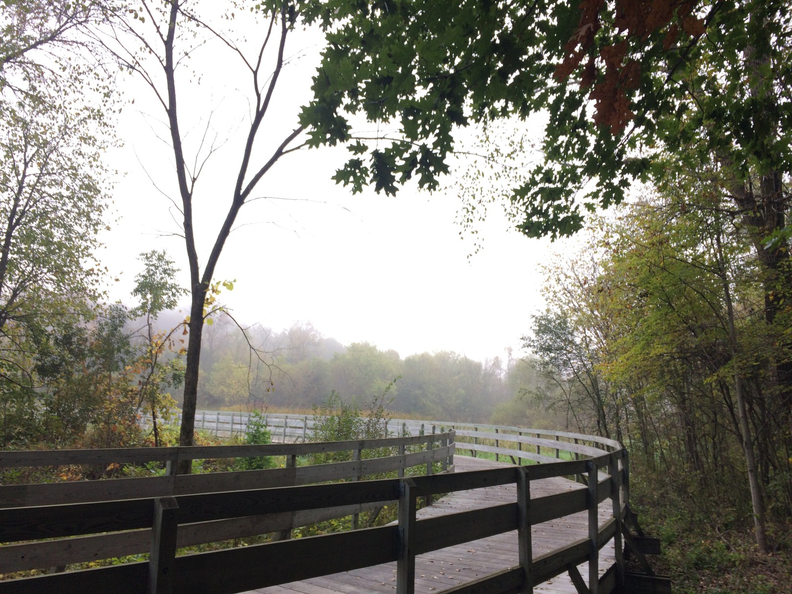 I headed out from the Horse Camp parking lot on an extended loop, and enjoyed a beautiful morning. There was a low fog that made the park seem ancient more remote. The first part of the run was uneventful, and I managed a slow but steady pace as I circled. Around mile 4 I crossed the one-lane bridge that was currently closed to cars. The creek under it was very high, so I figured I might get a bit wetter than I had planned. As I turned to enter the trail again, I saw my path covered over completely with water.