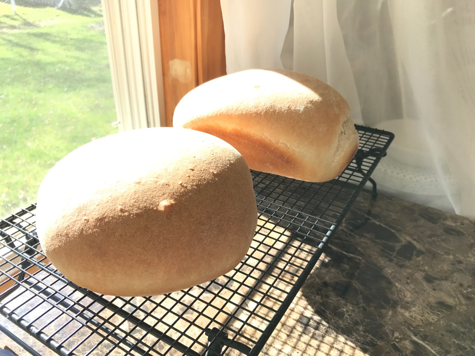 I got everything mixed together, and then my wife reminded me that when bread recipes call for flour I shouldn’t be packing the scoop tightly. I ended up only using about 1/2-2/3 of the flour the recipe called for because of this. I got the dough kneaded and then left it to rise, hoping I had everything done right. Sure enough a couple hours later it was ready to be punched down and formed into the loaves. I made a traditional loaf in a loaf pan, and then a round loaf on a cookie sheet. A few hours later and they came out of the oven, perfect as could be.