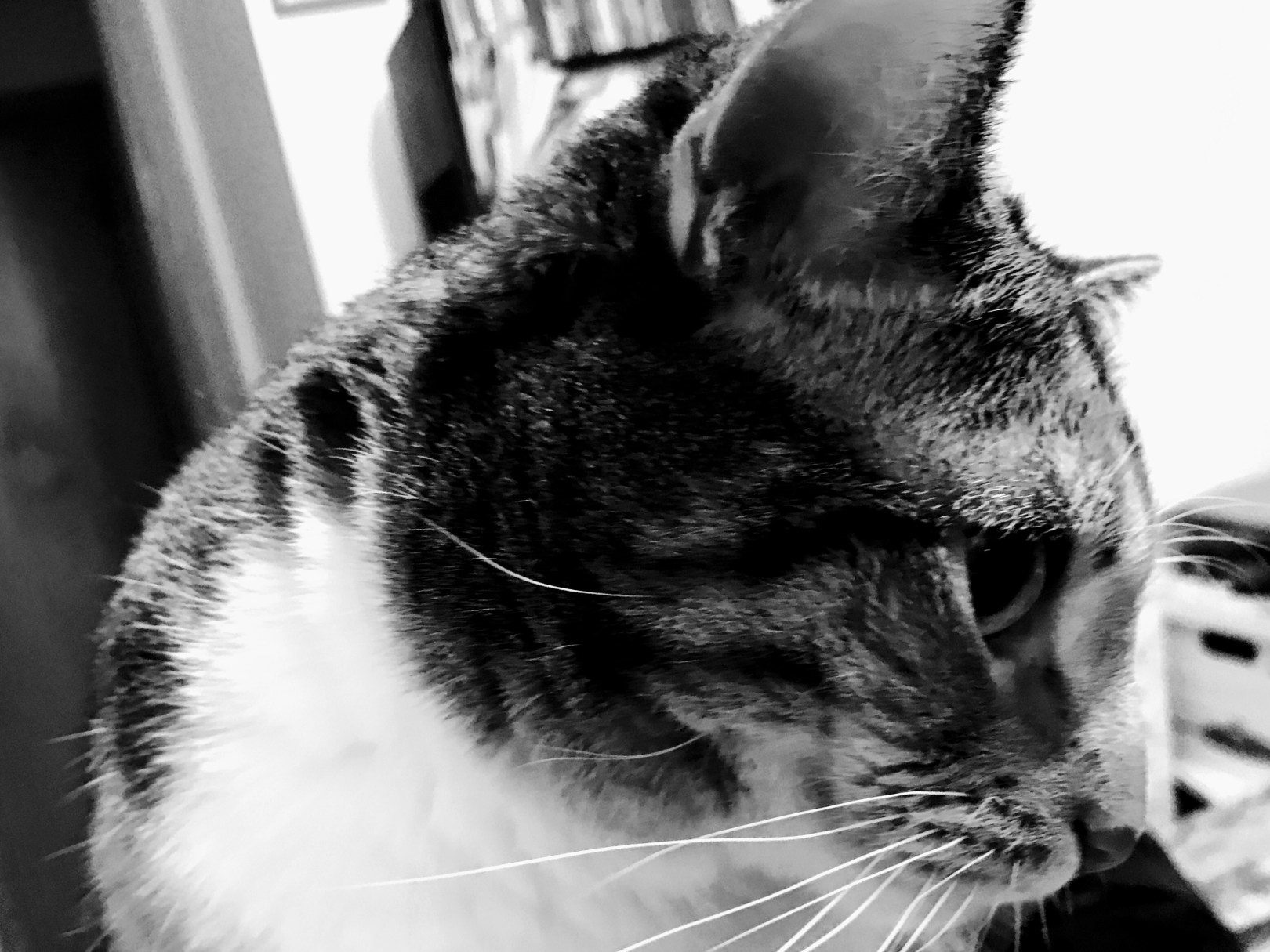 In an effort to make something more out of this blog, I’ve posted an artistic picture of a cat that likes to cause trouble in the evenings. She’s like a kid that needs stimulation, but she doesn’t know what she wants. So, she wanders around the house being a pest, unsure of how to relieve her boredom.