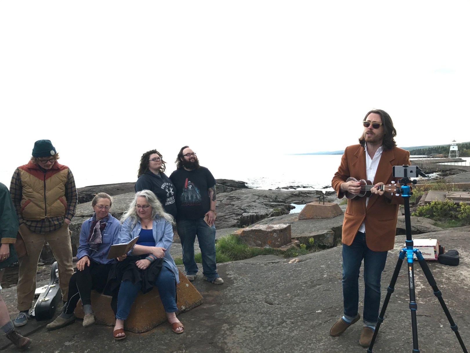 This past week we’ve been up on the North Shore, and on Thursday we got the opportunity to partake in a truly unique experience. Minnesota artist Jeremy Messersmith is in town to play a show at Voyageur Brewing Company. However, before the show at the brewery he gave a free show out on Artist’s Point, a part of the harbor wall on Lake Superior. A couple dozen folks gathered to listen to him play through his new album 11 Obscenely Optimistic Songs For Ukulele: A Micro-Folk Record For The 21st Century And Beyond.