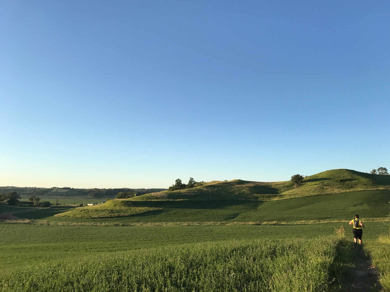Footing wasn’t that big of an issue, as the trails are all grass and dirt, with no roots or rocks to speak of. But being in bluff country meant a lot of climbing. In many ways the moderate trails were like the northern section of Murphy-Hanrehan park in the Twin Cities, with rollers that slowly sapped the strength out of you. Eventually we found ourselves on some blue trails, and it was amazing how much of a difference that made.