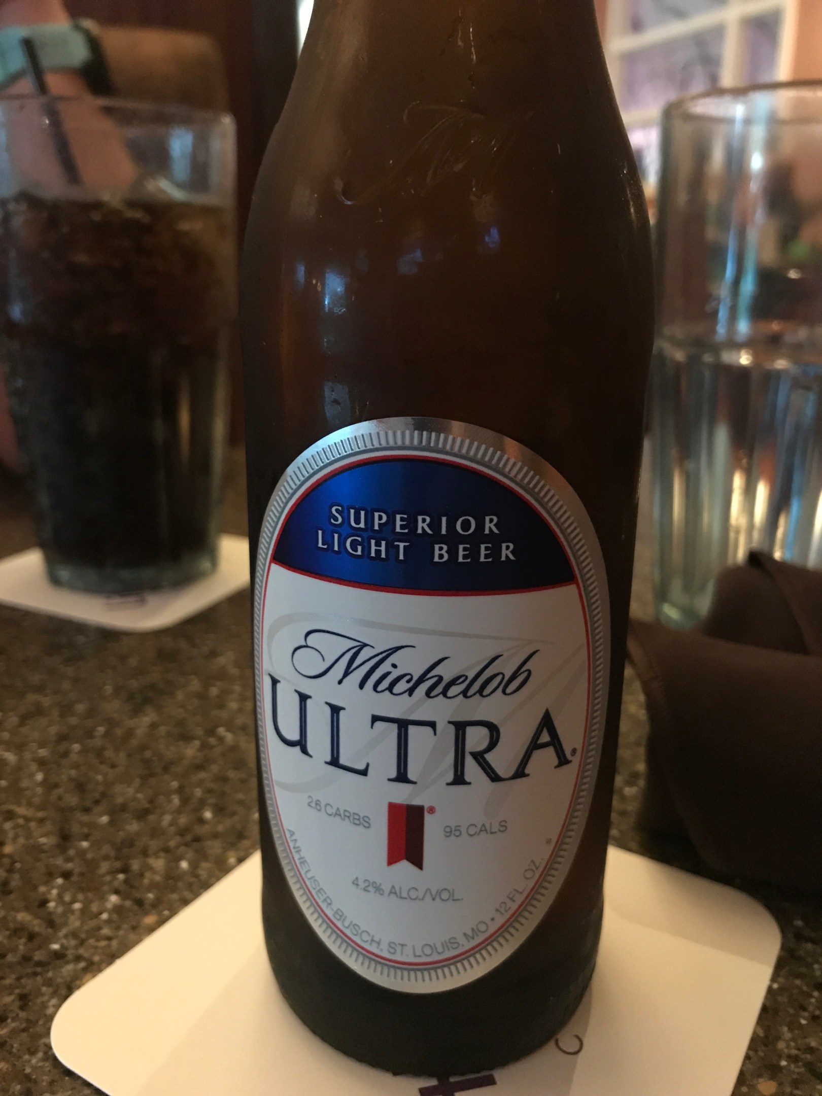 Interestingly enough I did some googling and discovered that Michelob Golden Light is actually only distributed in the upper midwest, so he had that part right, but it certainly isn’t a craft beer. After this experience, a few days later, I found myself at a small local casino, and instead of trying to overcome a lack of craft beer knowledge, I asked our server at the restaurant for a bottle of Michelob Ultra. I had no idea what I was going to get, but I figured what the heck, I might as well get another beer on Untappd.