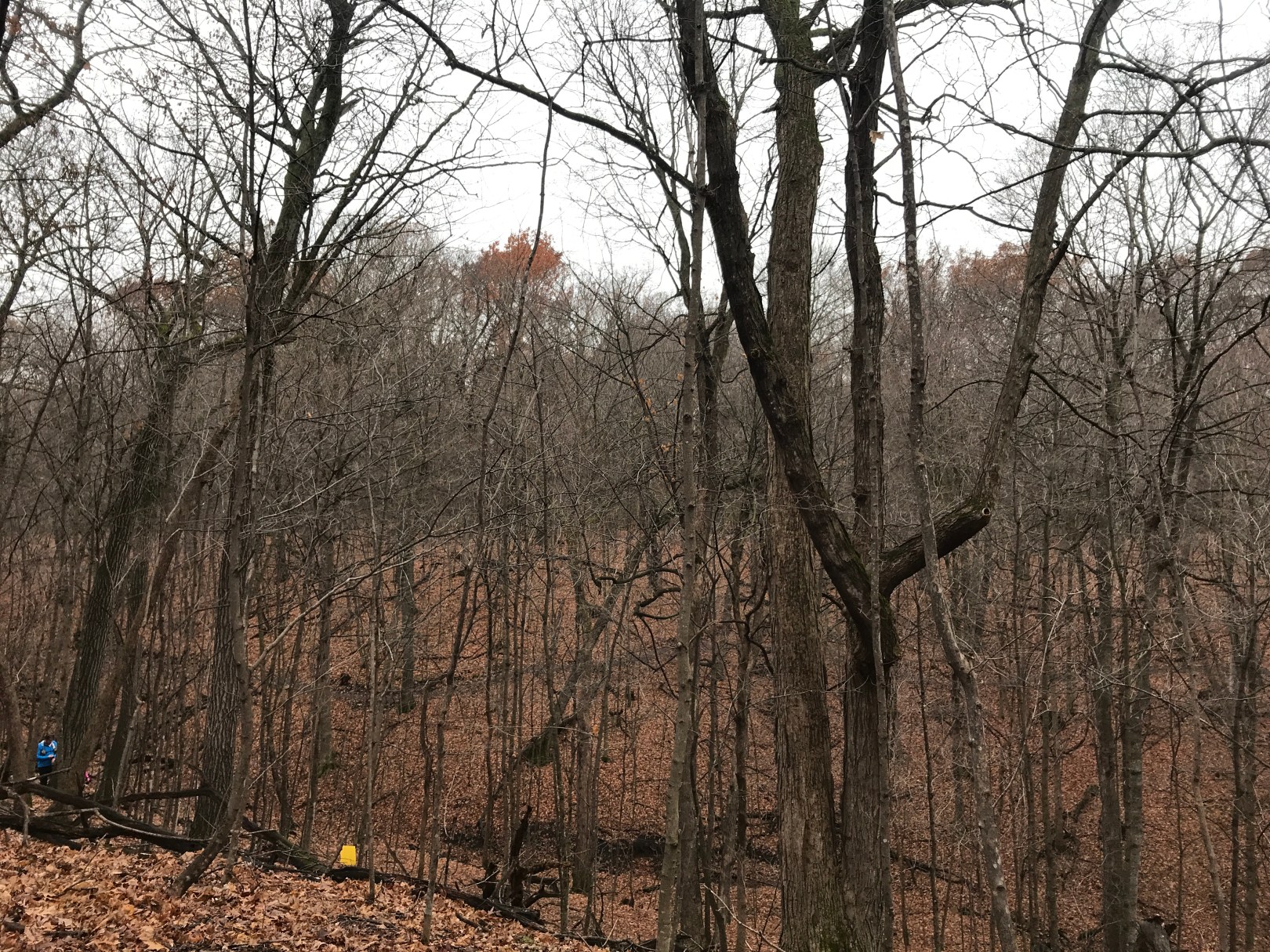 I headed out for a nice leisurely third loop, enjoying a nice fall day. We had gotten a bit of snow this past week, but there was none to be had on the entire course. It was a bit overcast and windy, but thankfully, when you were in the trees the wind was a non-issue. I slowly made my way around the course, and when I arrived at the aid station again I told my wife to go ahead and meet me at the finish in a bit and I’d call it a day. Of course, as sometimes happens, there were lots of friends at this aid station. I think it took me a good 10 minutes before I left to finish out the loop.