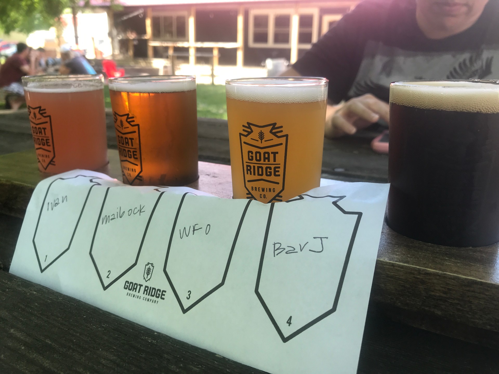 After our visit to Foxhole we headed up the road to New London for a stop at Goat Ridge Brewing. Goat Ridge is built right on the banks of the Middle Fork Crow River, and their back patio sat right along the shore. I ordered up a flight and we picked a table outside, listening to the sounds of the river. The beer was adequate, and not quite as good as Foxhole, but it also didn’t exhibit any particular brewing flaws. I think that if I had done these breweries in the reverse order, I wouldn’t have dinged Goat Ridge at all. For a brewery in a town of 1200 people, it exceeded the expectations.