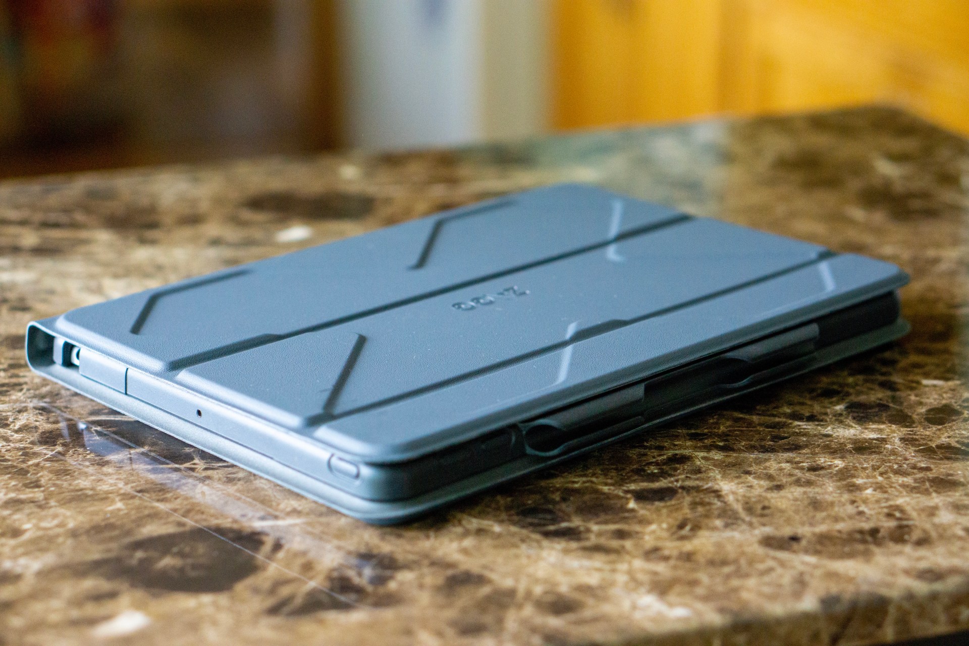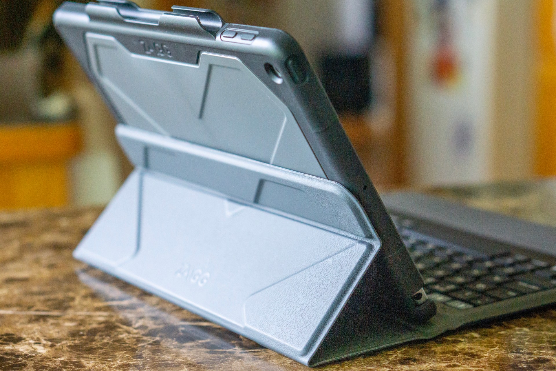 Overall the device feels rugged and protective. I haven’t tested this yet, and hopefully never will, but the iPad has now been on multiple bike rides, bouncing around in my pannier bags, as well as general use around the house and campsite. There are two parts to the case, the keyboard folio part, and the case that goes around the iPad itself. The case around the iPad feels sturdy and I think it should protect it just fine. The folio is slightly bigger and so in a fall, I assume the folio portion will take a lot of the brunt.