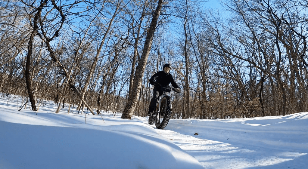 First off, even though many people will claim you can’t feel it on a fat bike, I love the feel of steel bikes. There’s something about the responsiveness that resonates with me. When I first rode my steel Salsa Vaya, I knew it was the frame material for me. Do I notice it as much in the winter, on snow? Probably not, but in my head I feel a difference. Now that we’ve had some snow melt, and I’m riding on bare ground, I certainly can tell a difference, and am happy with that steel-feel.