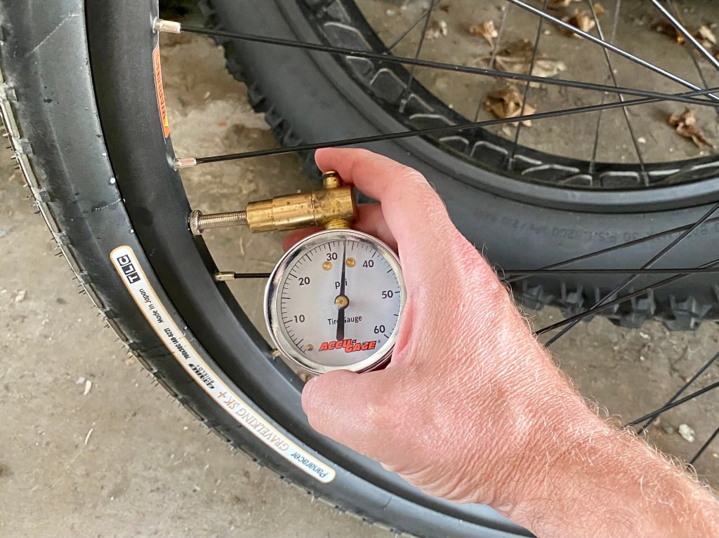I’ve been checking my pressure every day, as well as before and after rides. Right now I do seem to be losing about 1-2psi per day on each tire, but the act of riding doesn’t hasten that. I went for a 20 mile ride during a break in the smoke last week and the pressure didn’t change one iota from pre-ride. I’m thinking that it’ll just take a bunch more riding to get every little spot sealed up. I do think that my taping job was pretty good, but not quite as perfect as it could have been. At some point I may pull them apart and re-tape, but I’d like to save that until I need to change tires.