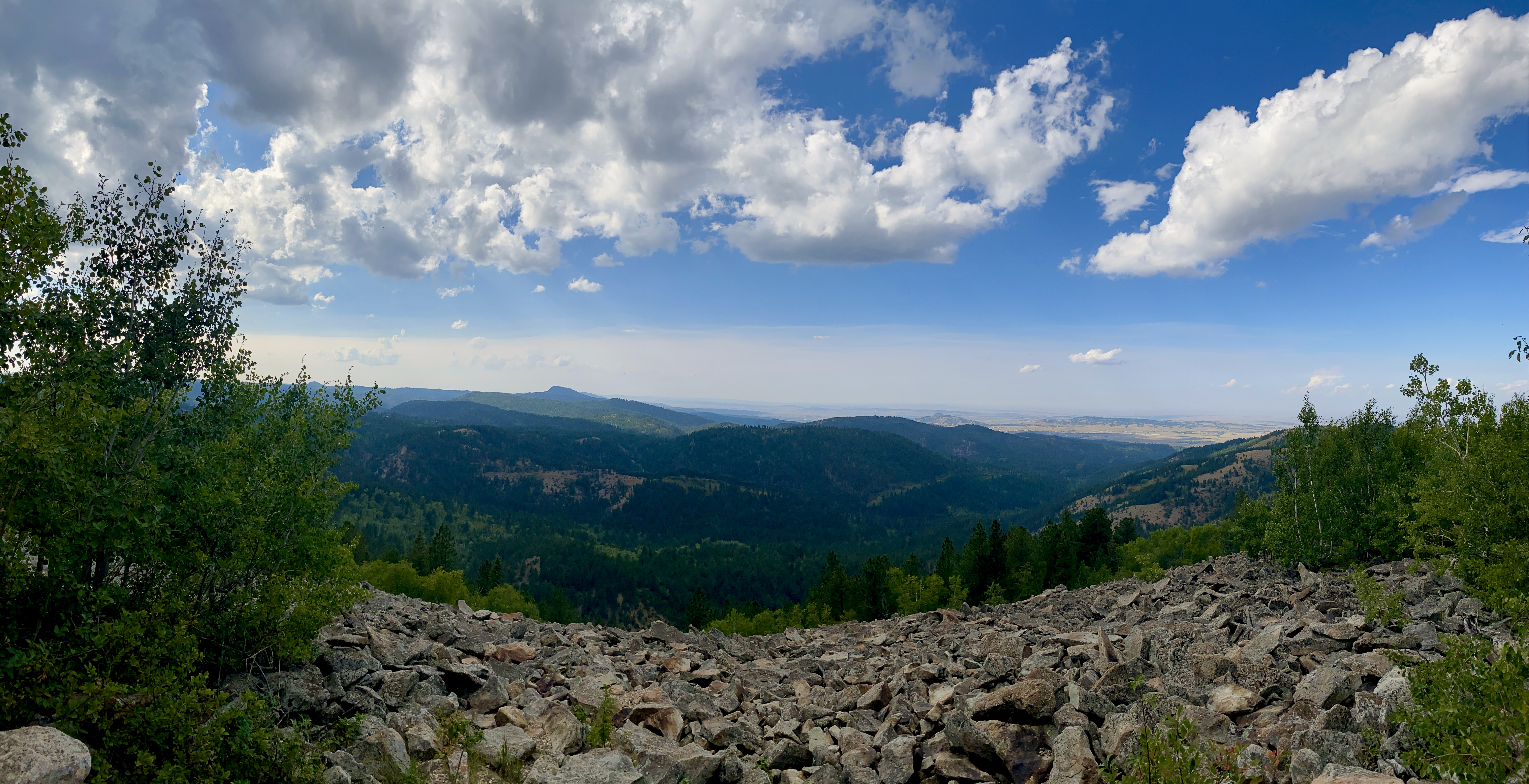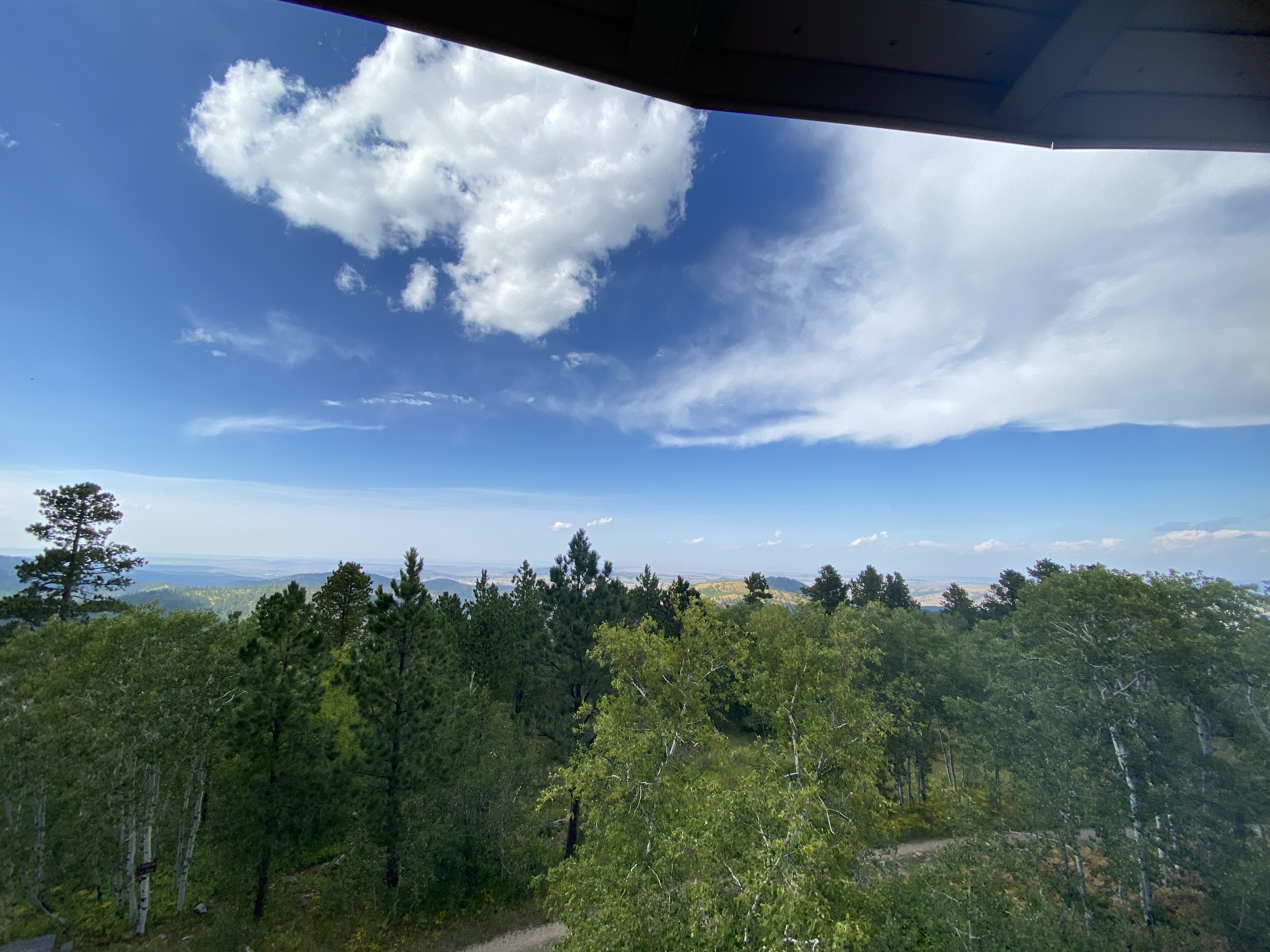 Our second day began with a hike on the Elk Canyon Trail, which is a small nearby route that was constructed by the host of our cabin. It was a magnificent little route, and if we had known about it sooner I think I would have spent more time on it the first day as well. After our morning hike we headed to Spearfish, SD to take the drive down Spearfish Canyon. The highlight of which was the short walk to Roughlock Falls, passing by crystal clear streams and magnificent rock faces. We also hit Spearfish Falls before heading up past Deadwood, SD to Mount Roosevelt and the Roosevelt Tower. From this tower we got a sweeping view of the entire landscape, including some rain clouds in the distance that we watched pass over where our cabin was. We decided to relax on the tower for a bit longer to let the storms pass before heading back.