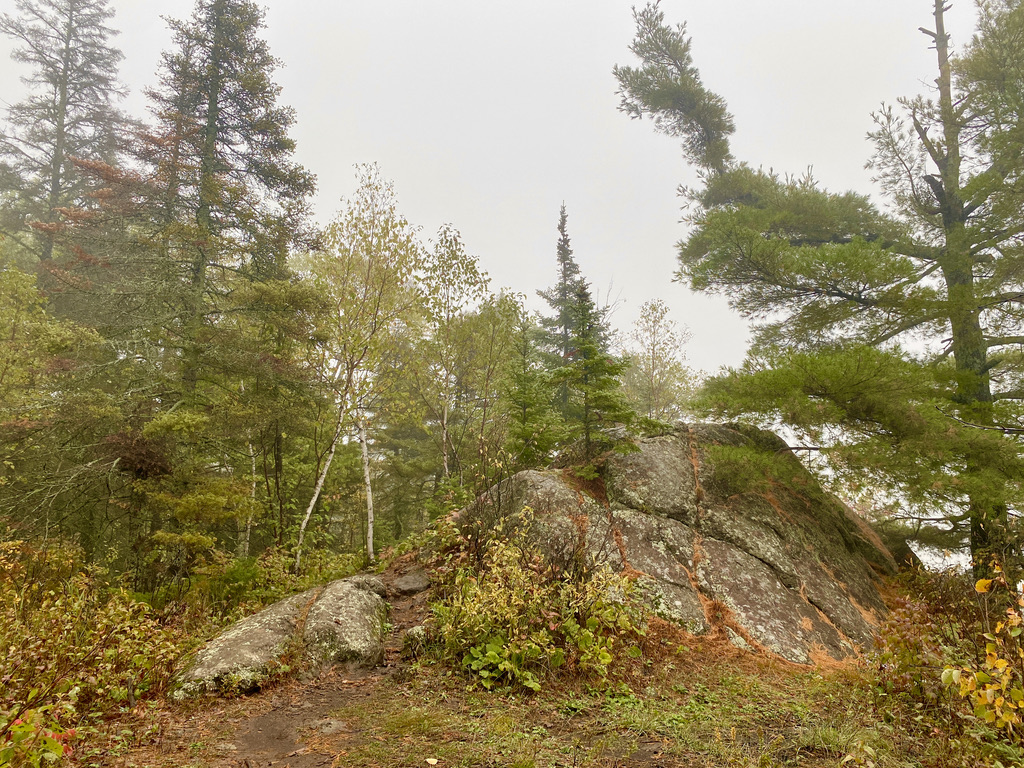 The journey from Gooseberry to Fors Road (where I departed the trail) was a lot harder than either of us had anticipated. There were some serious climbs and massive rocks to navigate in this section. Additionally, the rain and fog meant that we had zero visibility, and so what could have been spectacular views near the Castle Danger area were just a sea of grey.