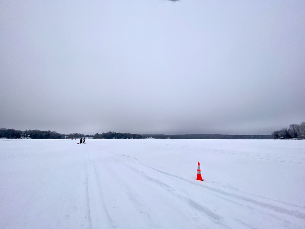 Eventually we arrived at the Butternut Lake Lodge where the race would begin (and the 160 milers do their turn-around). The usual morning race prep ensued; hitting the bathroom multiple times, grabbing a quick snack, nervously chatting with folks. Soon enough though it was time to launch and the day had begun. The first two miles of the race is across a frozen lake, which offers very mixed conditions. Sometimes it’s glare ice, and other times it’s drifted snow. We followed the markers to the other side as efficiently as we could and soon enough we were on the short singletrack section that connects us to the road, which then brings us to the Tuscobia trail.