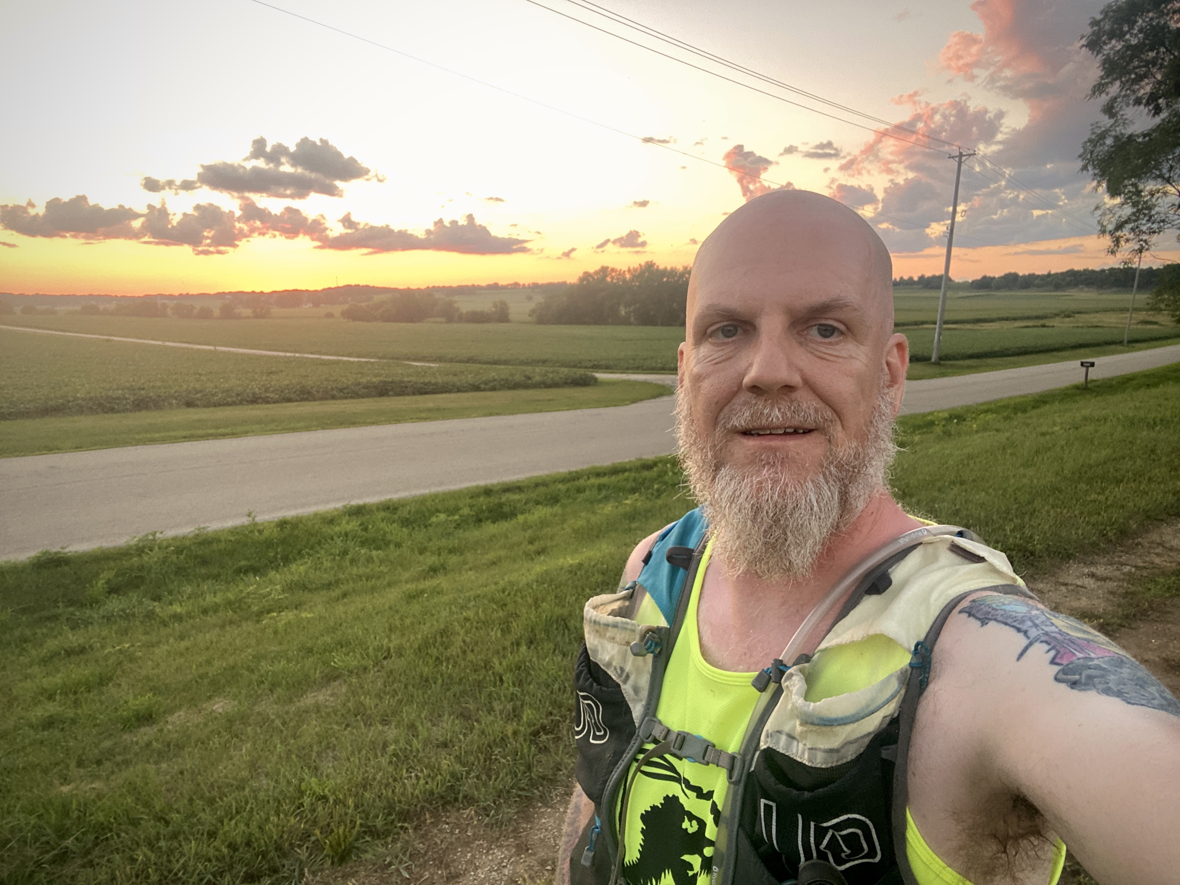 Soon enough I was in Belleville, the race HQ and the first big stop of the race for me in my plan. By this point my wife had arrived and Mike and Beth had gotten the truck fixed so everything was back on schedule. I had a sandwich and some pop and did a sock change before heading out on one of the longer slogs of the event, the trail to Dot’s Tavern and back. This 9 mile segment is some of the most exposed trail on the course, and I was hitting it during the hottest part of the day. Even though the temps were pretty good (around 82ºF/28ºC) it was still really sunny and so my running was not as consistent in this stretch as I would have liked. However, I made it to Dot’s and back in under 10 hours elapsed since I started the race. However, during my return from Dot’s is when something started brewing that would define the rest of the day for me.