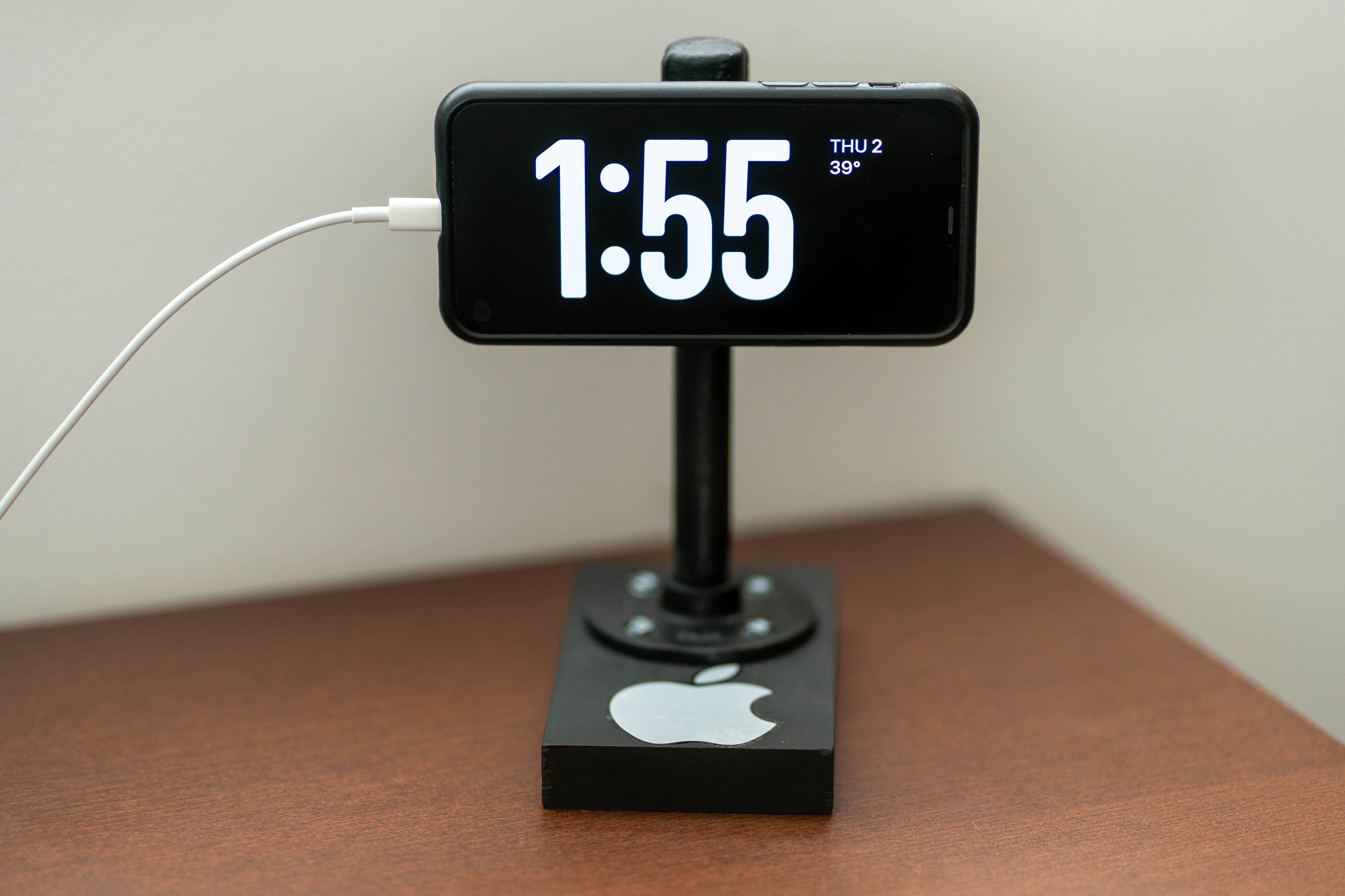 Once I had all the pieces it was time for assembly. It all went together smoothly, and things didn’t need to be tightened down very hard as this is only supporting a small phone. I then coated it in spray paint, added a sticker, and attached the SP Connect mount. After letting it dry overnight it came out better than I expected and now I’ve got the perfect bedside companion to replace my old alarm clock that served me so well for many years.