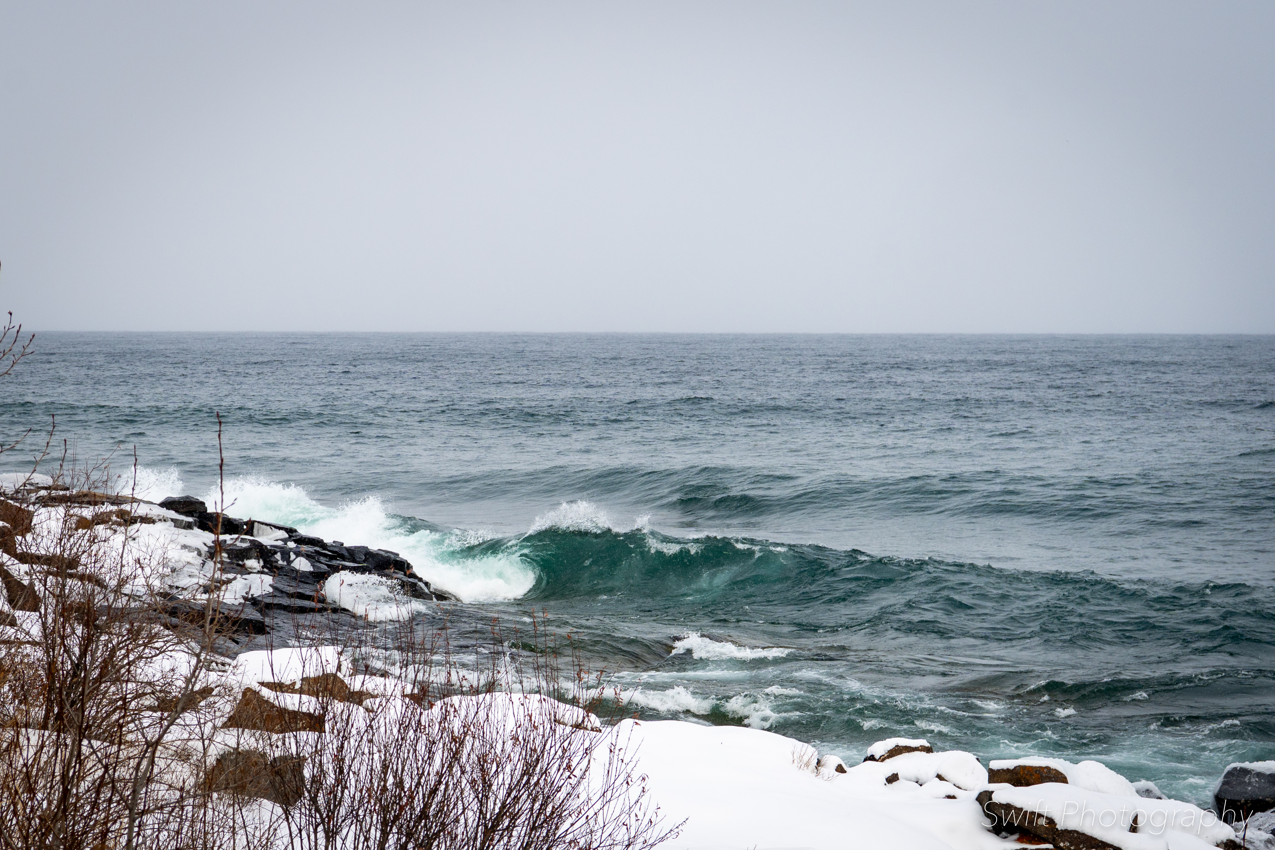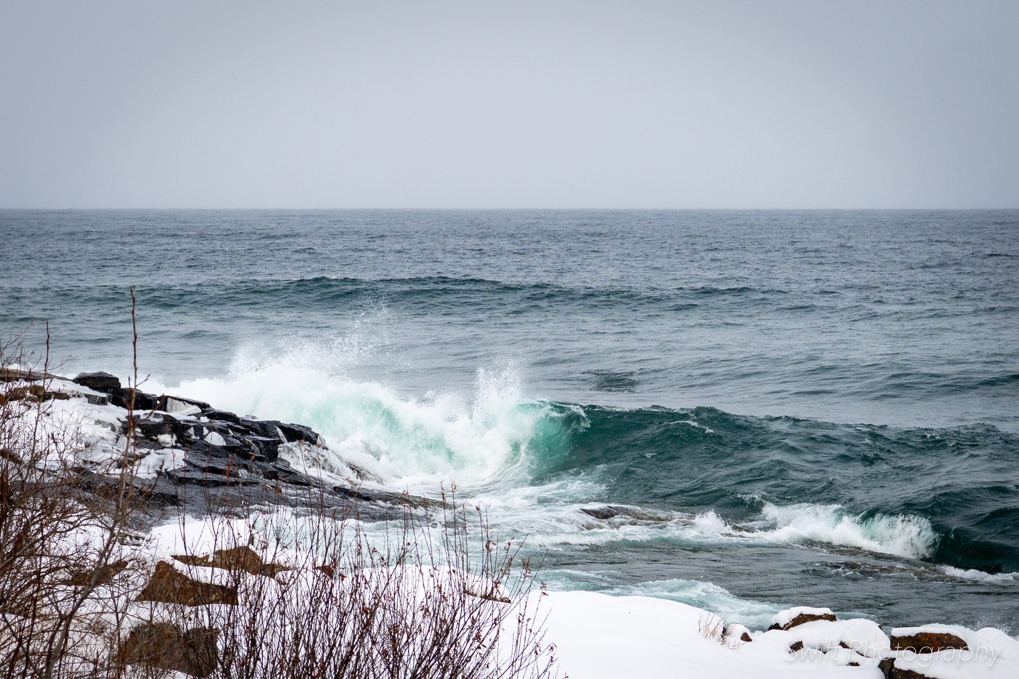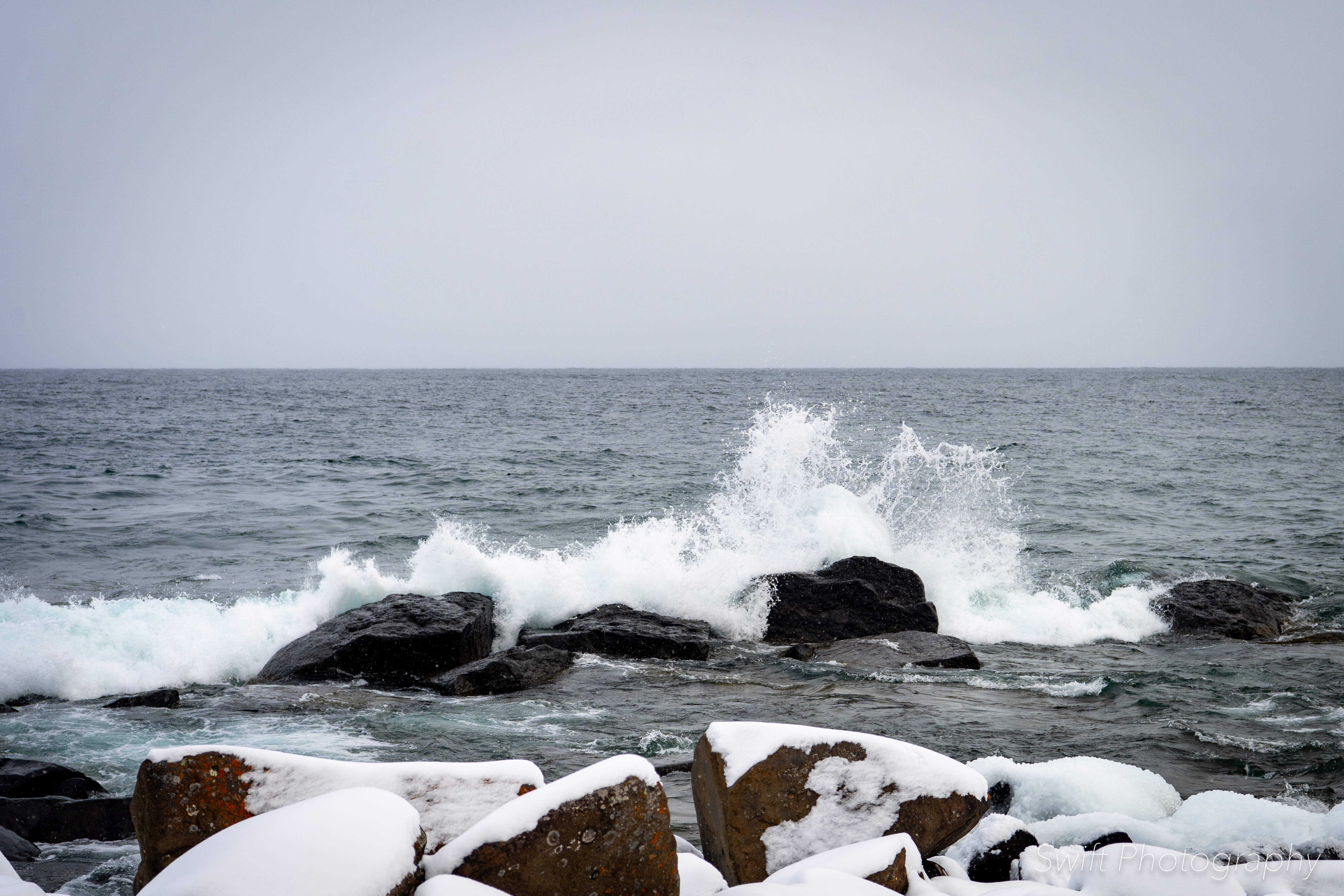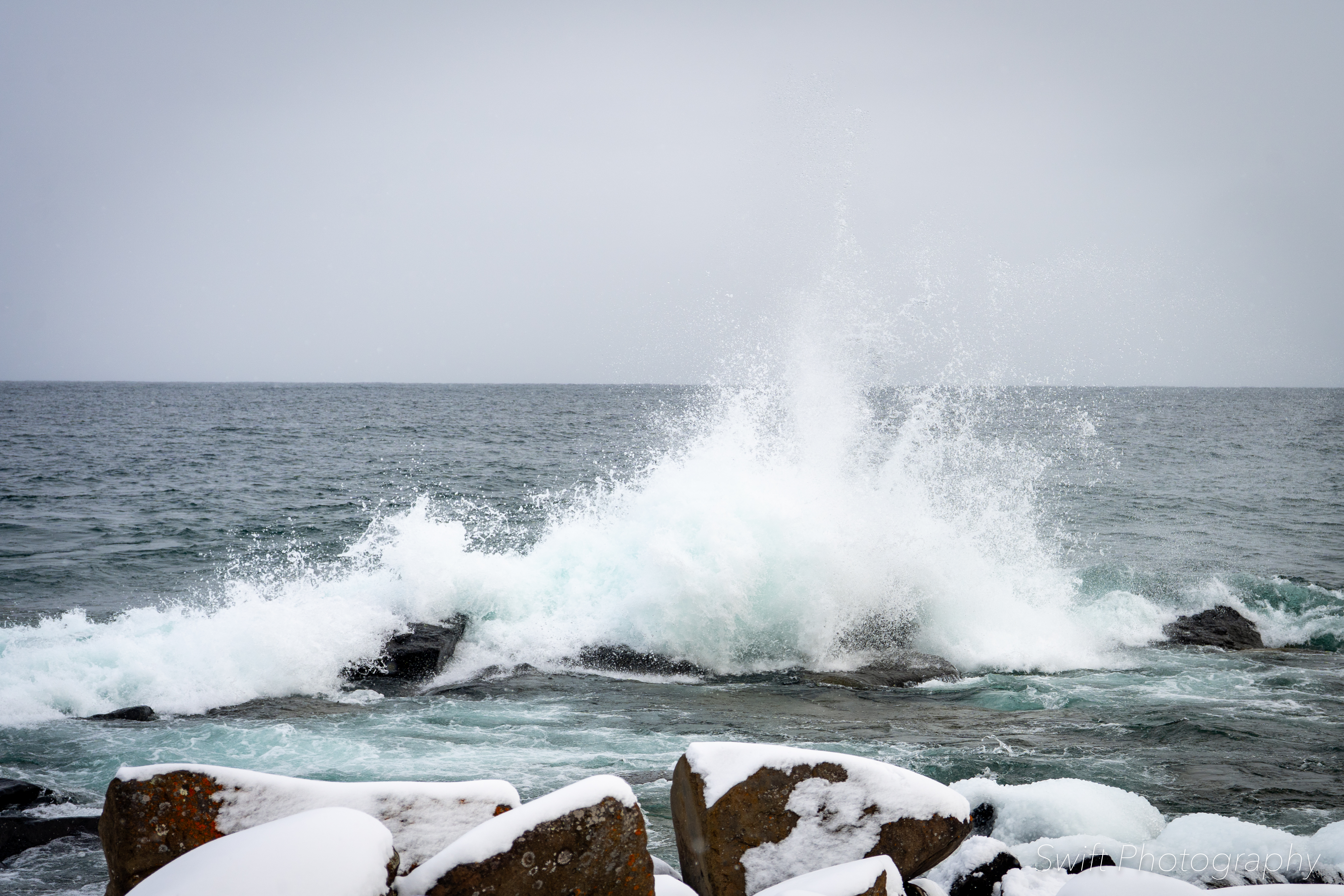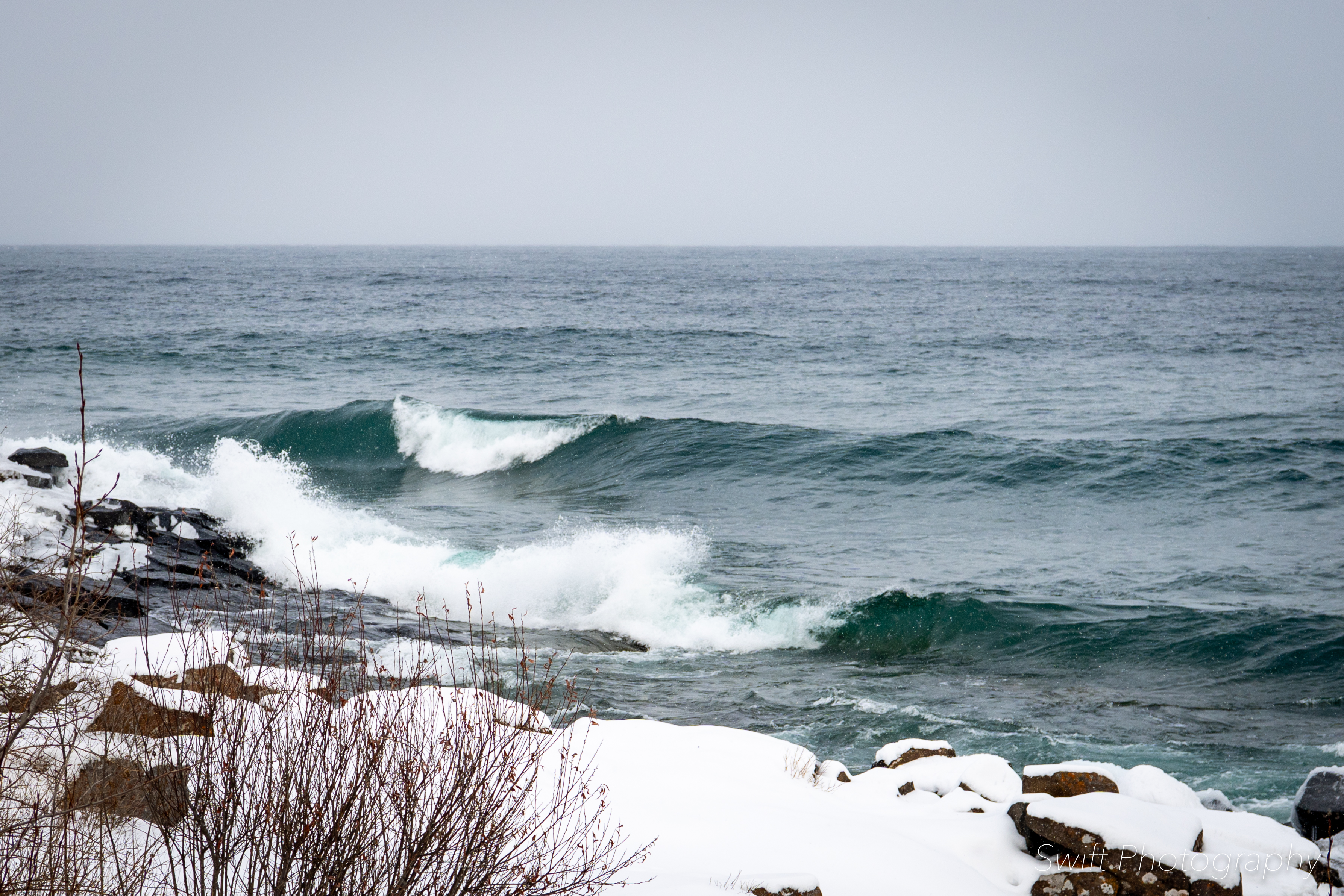 This past weekend when we were up on the North Shore the wind was blowing hard and the lake was ready for surfers (yes a few crazy people do surf Lake Superior in the winter). The waves were high and crashing into the shore right outside our hotel, so I took a few moments to capture some shots.