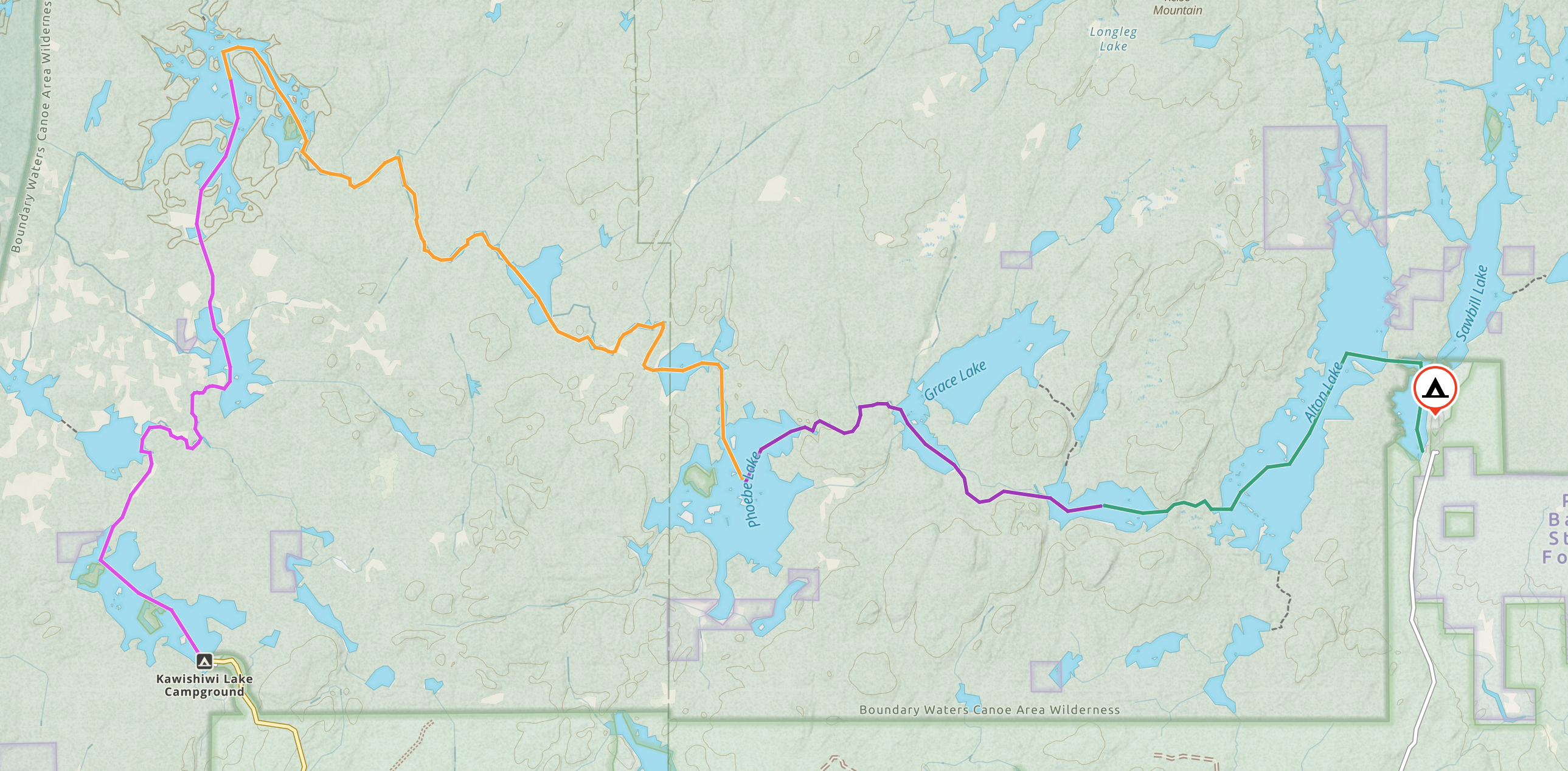 Based on their recommendation, and permit availability for our launch date, we settled on doing the Lady Chain loop. The outfitter would shuttle us down to Kawishiwi Lake (entry point 37) and from there we would make a journey back through 10 different lakes, many rivers, and probably a dozen and a half portages. The route was well established and would give us a really good sense of some of the different types of adventures that you can have in the BWCA.
